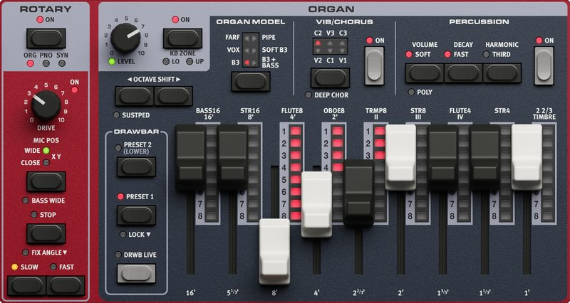 • 3 types d'émulations de roues phoniques permettant de choisir jusqu’à quel point votre orgue sonne vintage